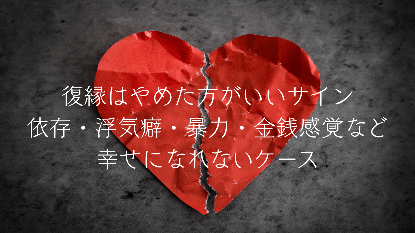 そこで今回は、「復縁はやめた方がいいサイン」について、依存や浮気癖、暴力、金銭感覚の不一致など具体的な例を挙げて解説します。
